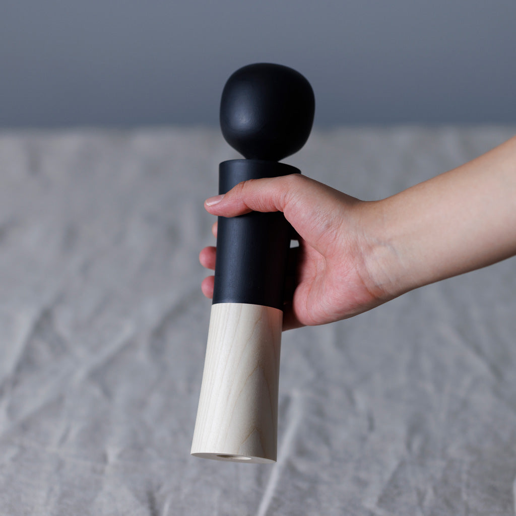 木の質感が心地よく、ほどよいサイズの丸い頭部は手のひらにすっと収まります。