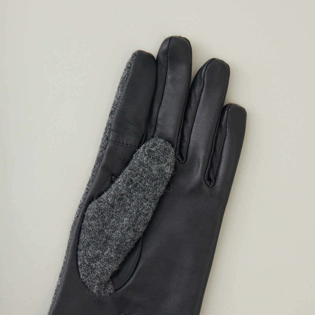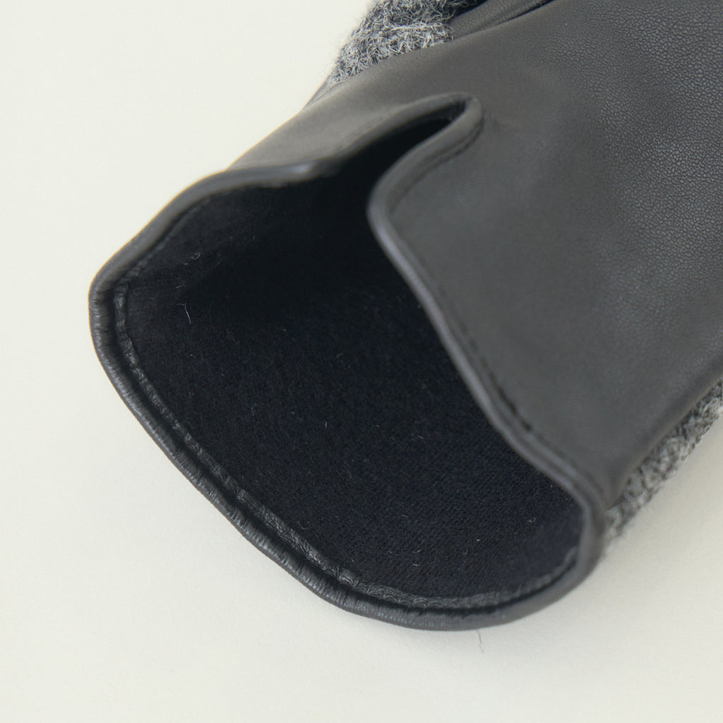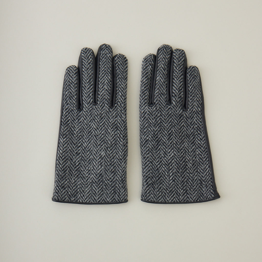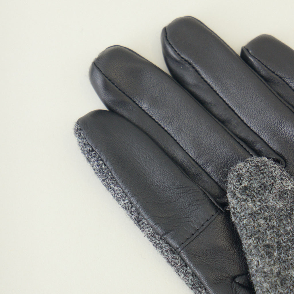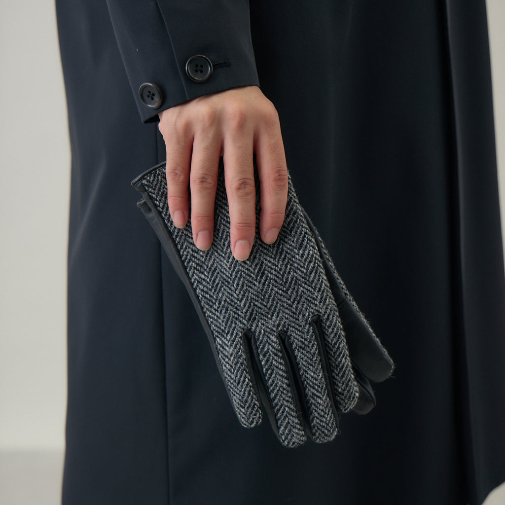 インポートファブリックブランド"Harris Tweed”のツイードのツイード生地と、柔らかな羊革を合わせた、トラッドで大人カジュアルな雰囲気のコンビネーショングローブ。
