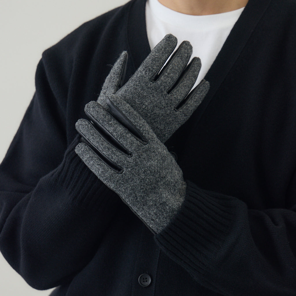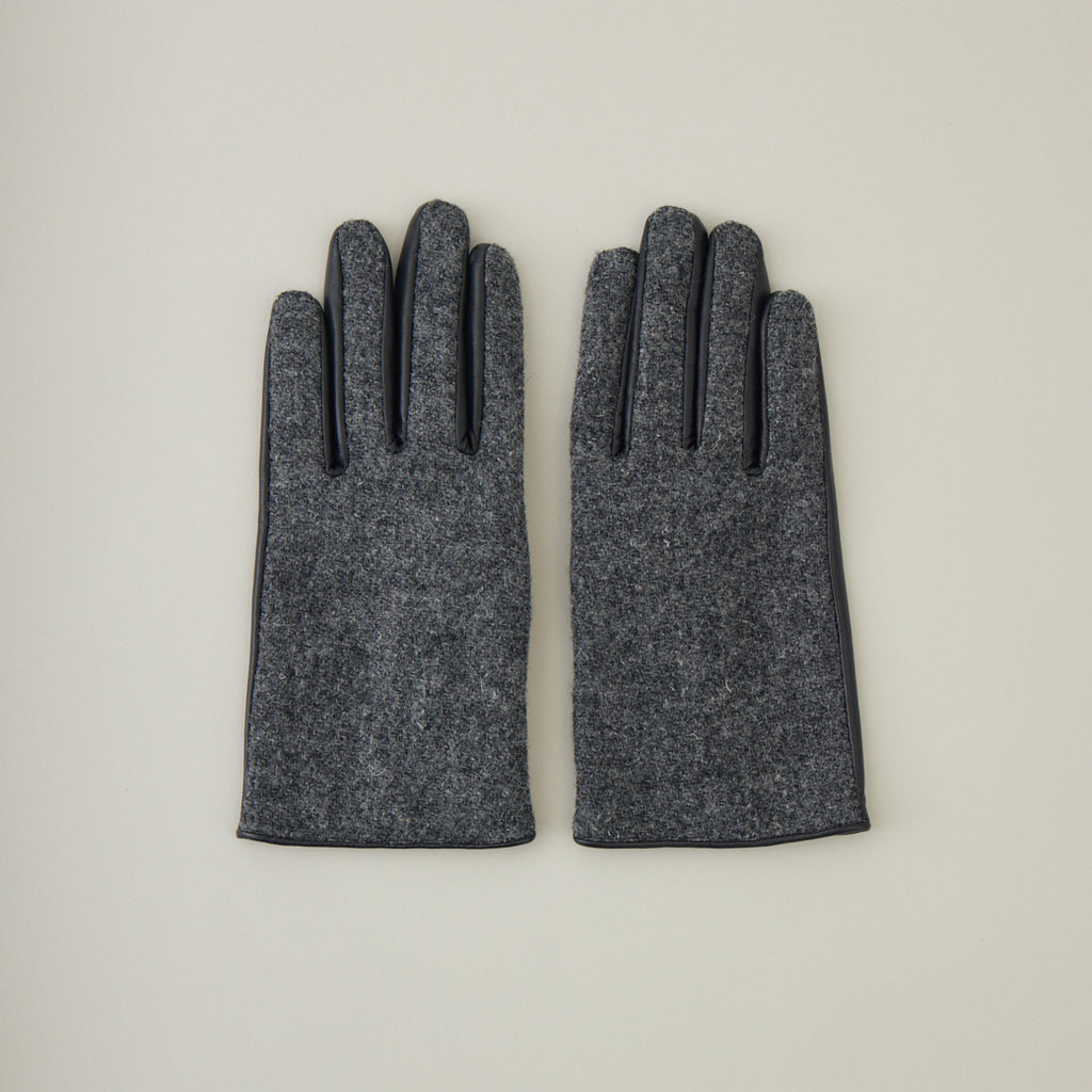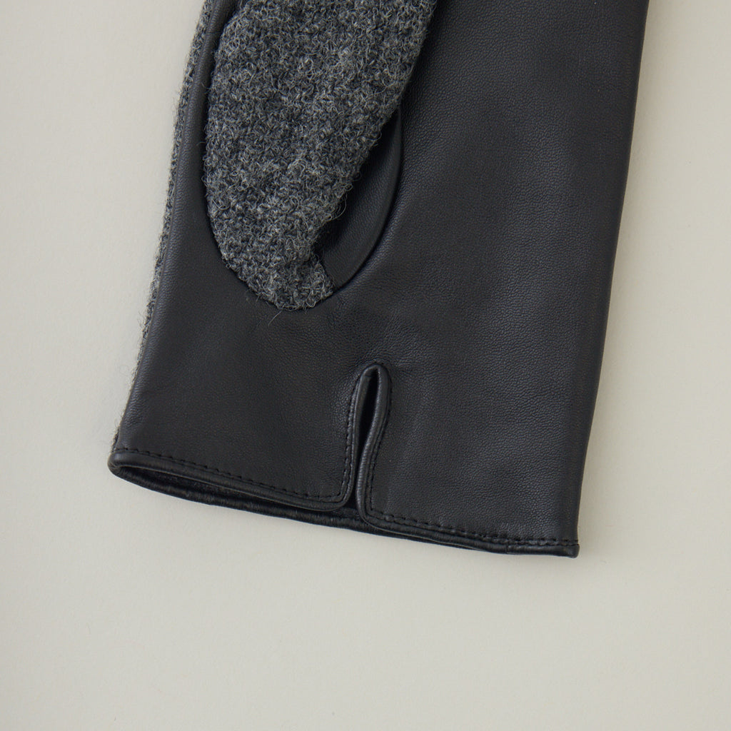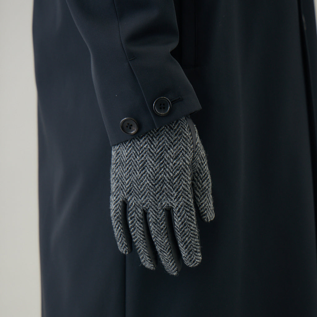 インポートファブリックブランド"Harris Tweed”のツイードのツイード生地と、柔らかな羊革を合わせた、トラッドで大人カジュアルな雰囲気のコンビネーショングローブ。