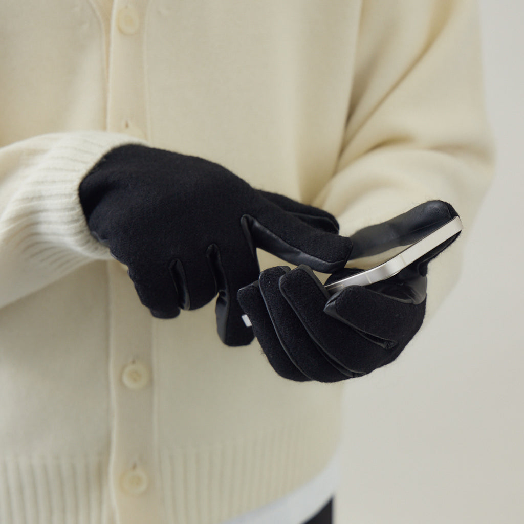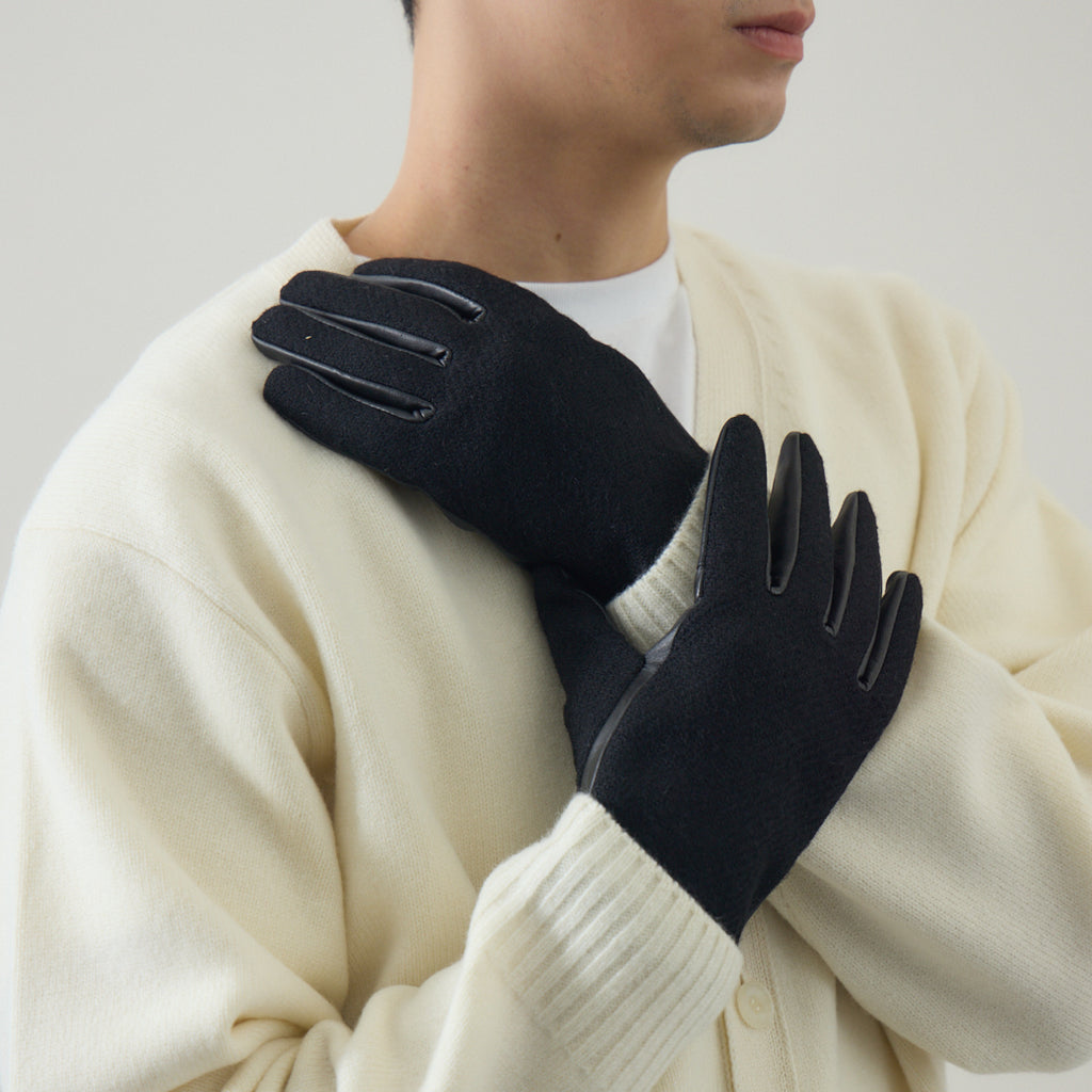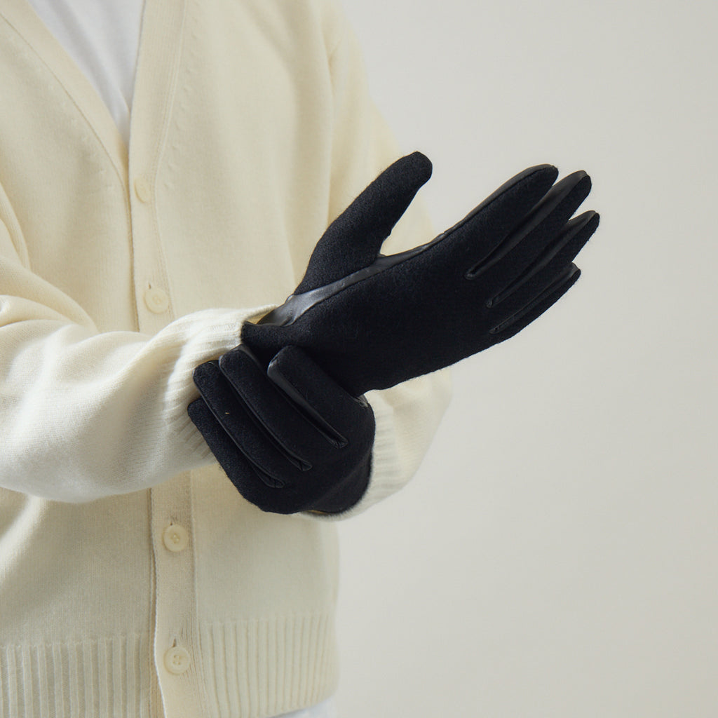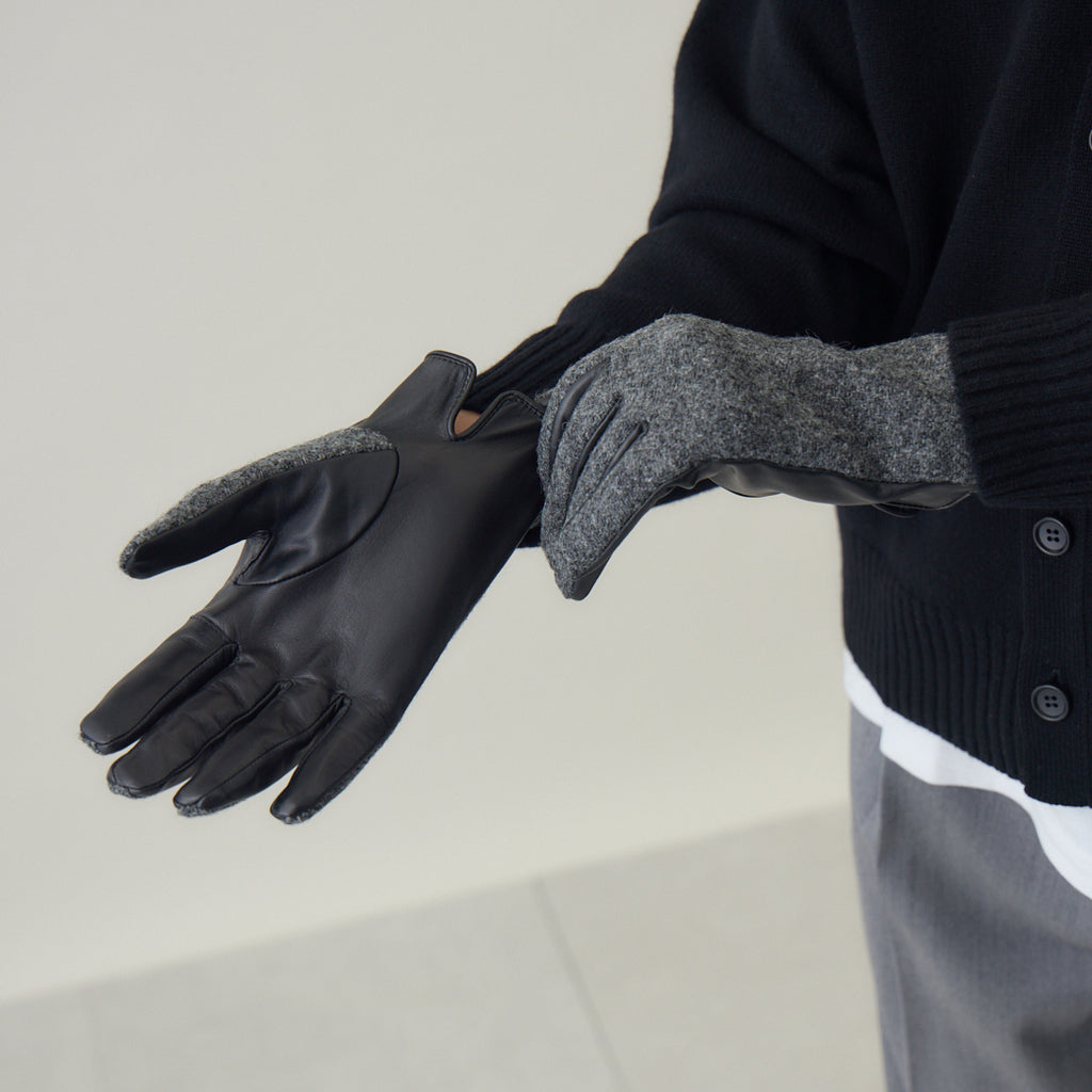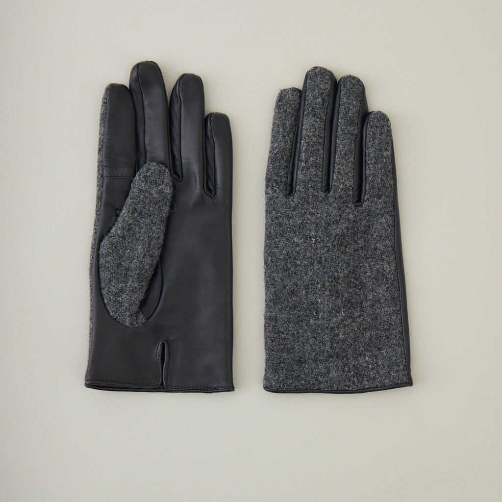 インポートファブリックブランド"Harris Tweed”のツイードのツイード生地と、柔らかな羊革を合わせた、トラッドで大人カジュアルな雰囲気のコンビネーショングローブ。