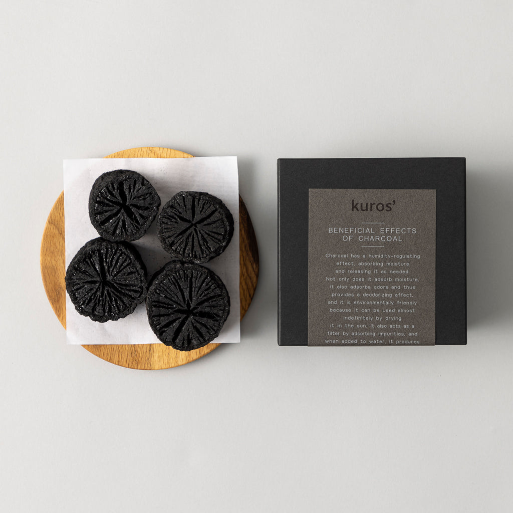 くぬぎの樹を原木としたすこし柔らかめの炭です。炭の断面が菊の花のような割り目があり、綺麗で菊炭とも呼ばれており、主に茶道でお湯を沸かすときに使われます。アルカリ性のニオイに対して効果を発揮しやすいです。