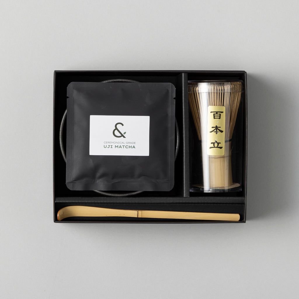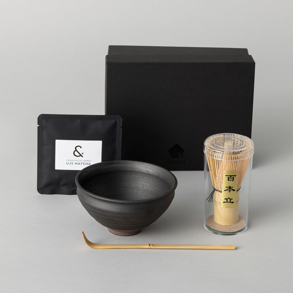 抹茶碗・茶さじ・茶筅・宇治抹茶がセットになり、届いたその日からすぐにお茶を点てて楽しめます。