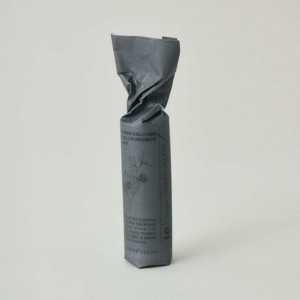 炭粉と老山白檀を重ね、クロモジ蒸留水を贅沢に用いて仕立てました。