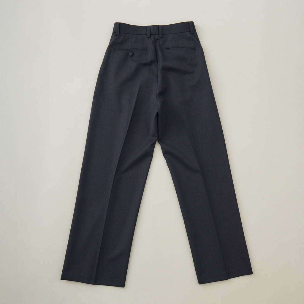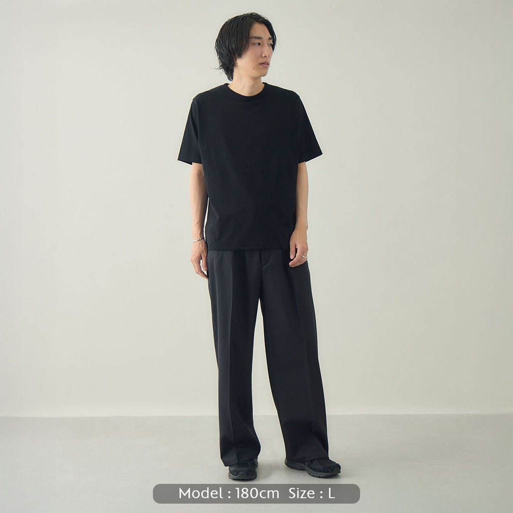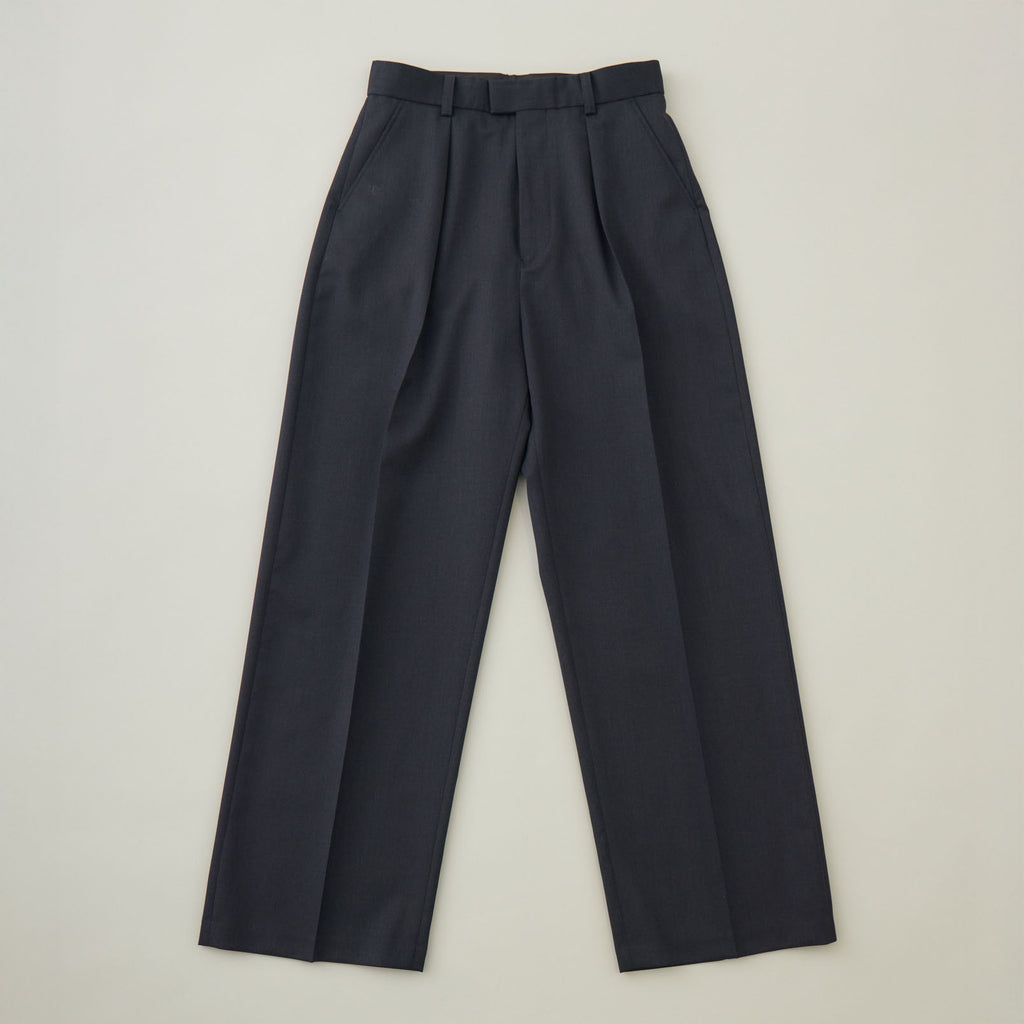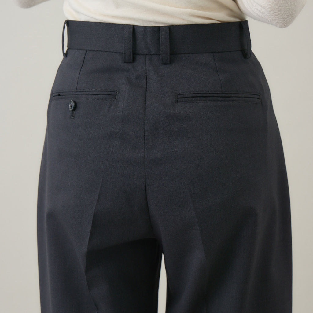 程よいゆとりのあるワイドスラックスは、ボリュームのあるトップスからコンパクトなシャツまで自在にマッチ。フォーマルにもカジュアルにも取り入れやすく、シーンを問わず活躍する一本です。日常に溶け込みながらも、確かな品格を持つ定番パンツです。