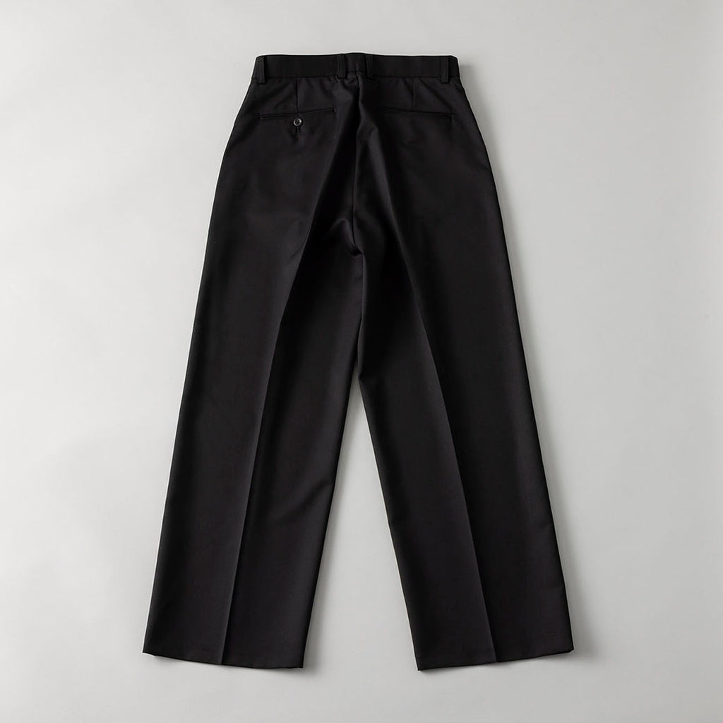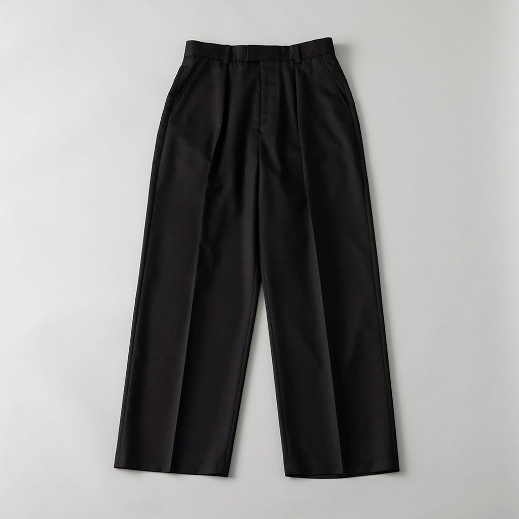 程よいゆとりのあるワイドスラックスは、ボリュームのあるトップスからコンパクトなシャツまで自在にマッチ。フォーマルにもカジュアルにも取り入れやすく、シーンを問わず活躍する一本です。日常に溶け込みながらも、確かな品格を持つ定番パンツです。