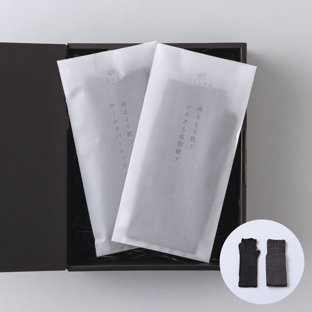 重ね履きの一枚目に履いていただくマストアイテムの「シルク5本指靴下」で汗を吸い、それをすっぽり包み込み「ウールカバーソックス」で吸放湿させ湿気を外に追い出します。その2足を合わせた温活靴下2足セットです。