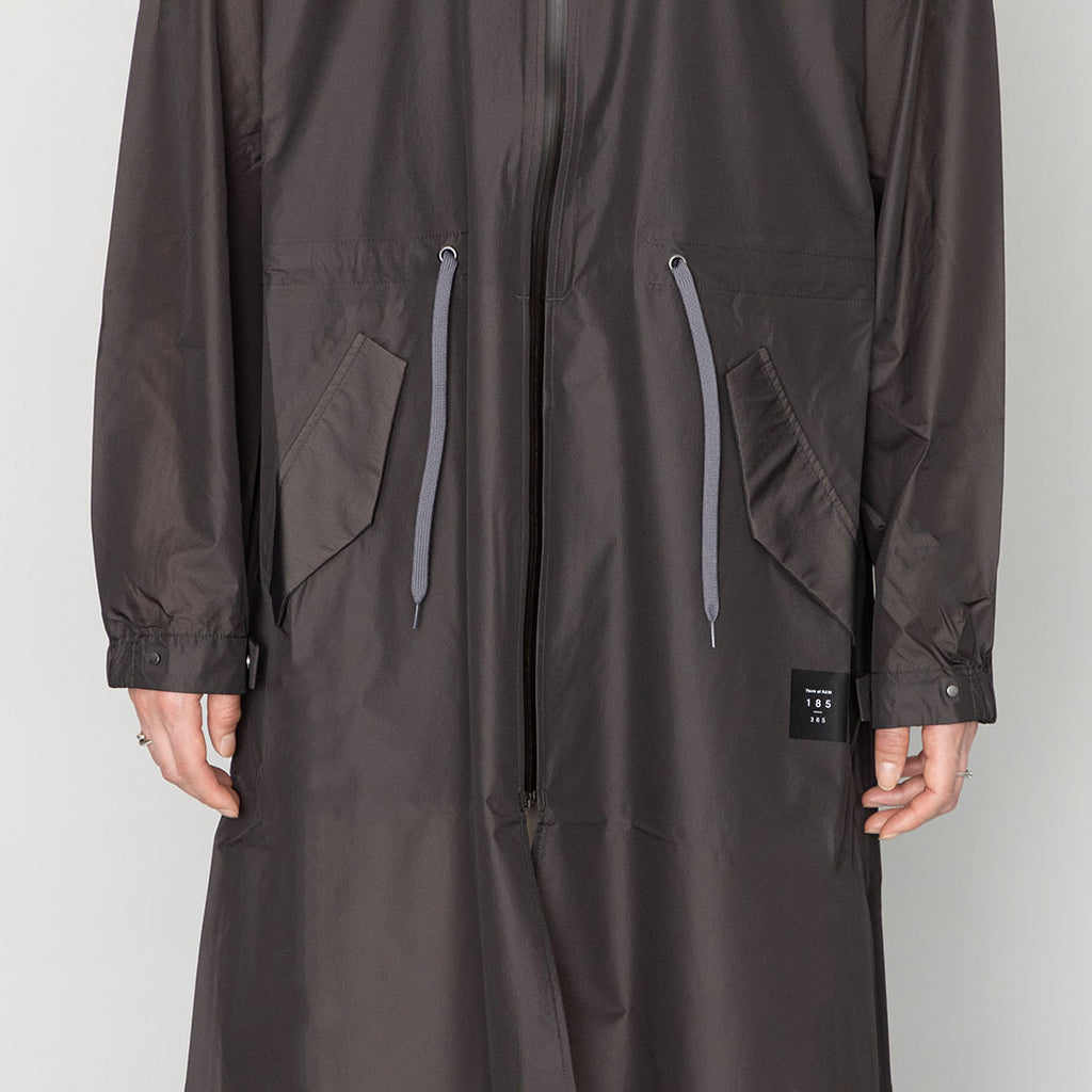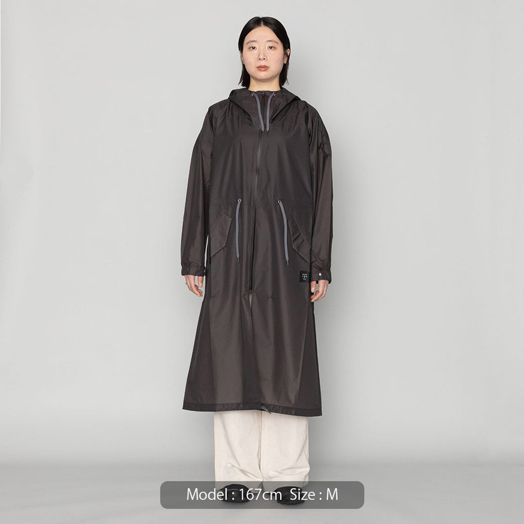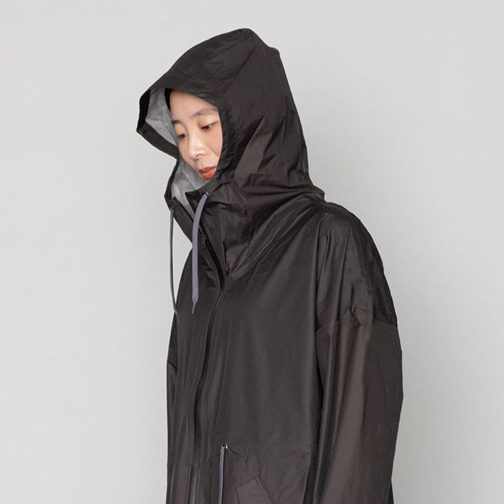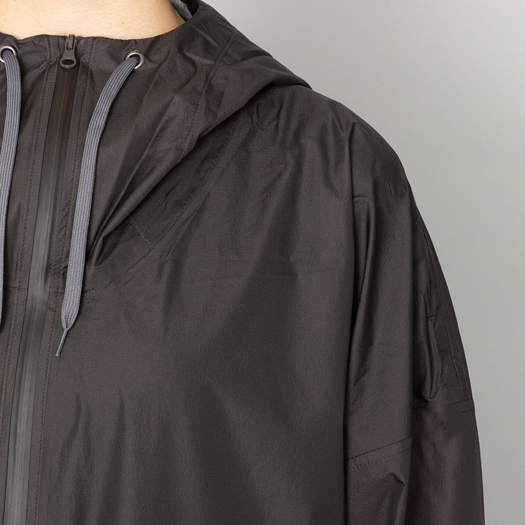 縫い目には防水シームテープを施し、細部までしっかりと雨風の侵入をブロック。背中のベンチレーションが通気性を高め、フード・ウエスト・裾にはドローコードを備えており、シルエットやフィット感を自在に調整できます。