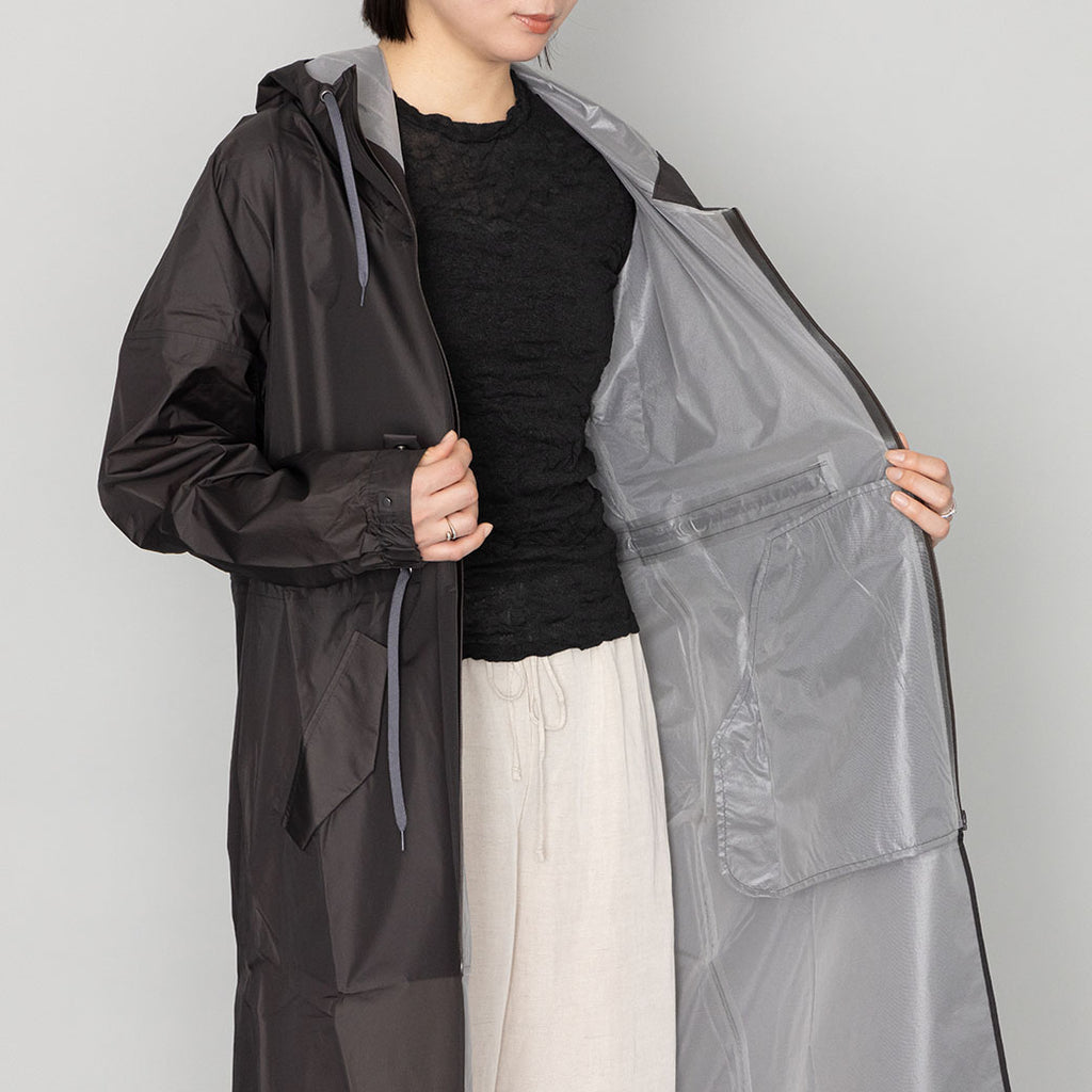 長時間の移動や着用でも疲れにくい、超軽量(約270g/L)設計。生地はさらっとした肌触りで、べたつきにくく快適。軽さと動きやすさを兼ね備えた構造で、雨の日もアクティブに過ごせます。