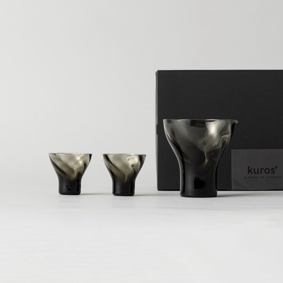 流れるようなラインと、きちっとした形状が融合した、ガラスならではの質感とグラデーションが美しい酒器。