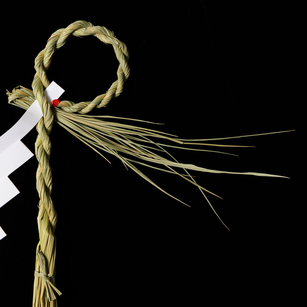 細い藁束を使って簡易的に仕立てられた「のの字飾り」。