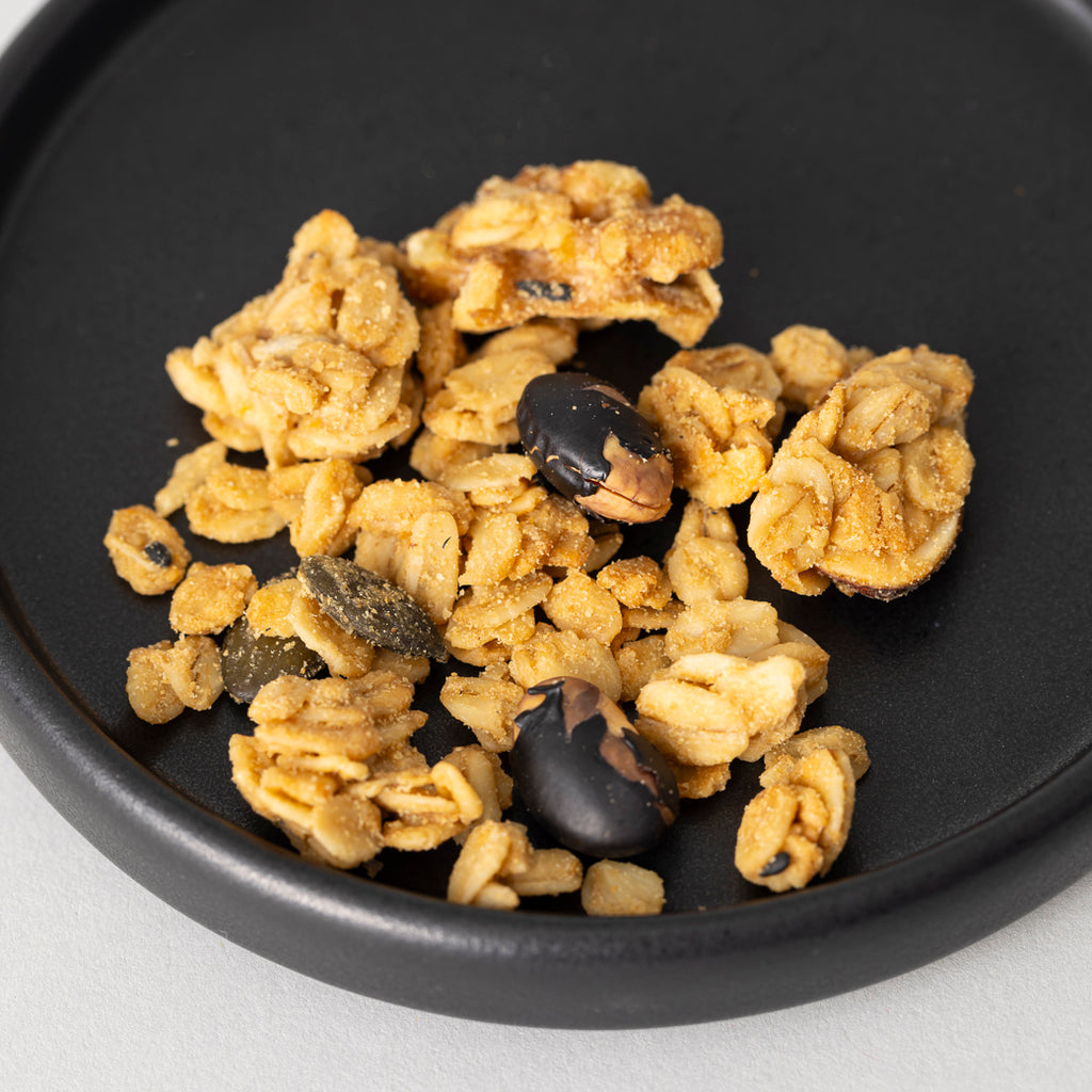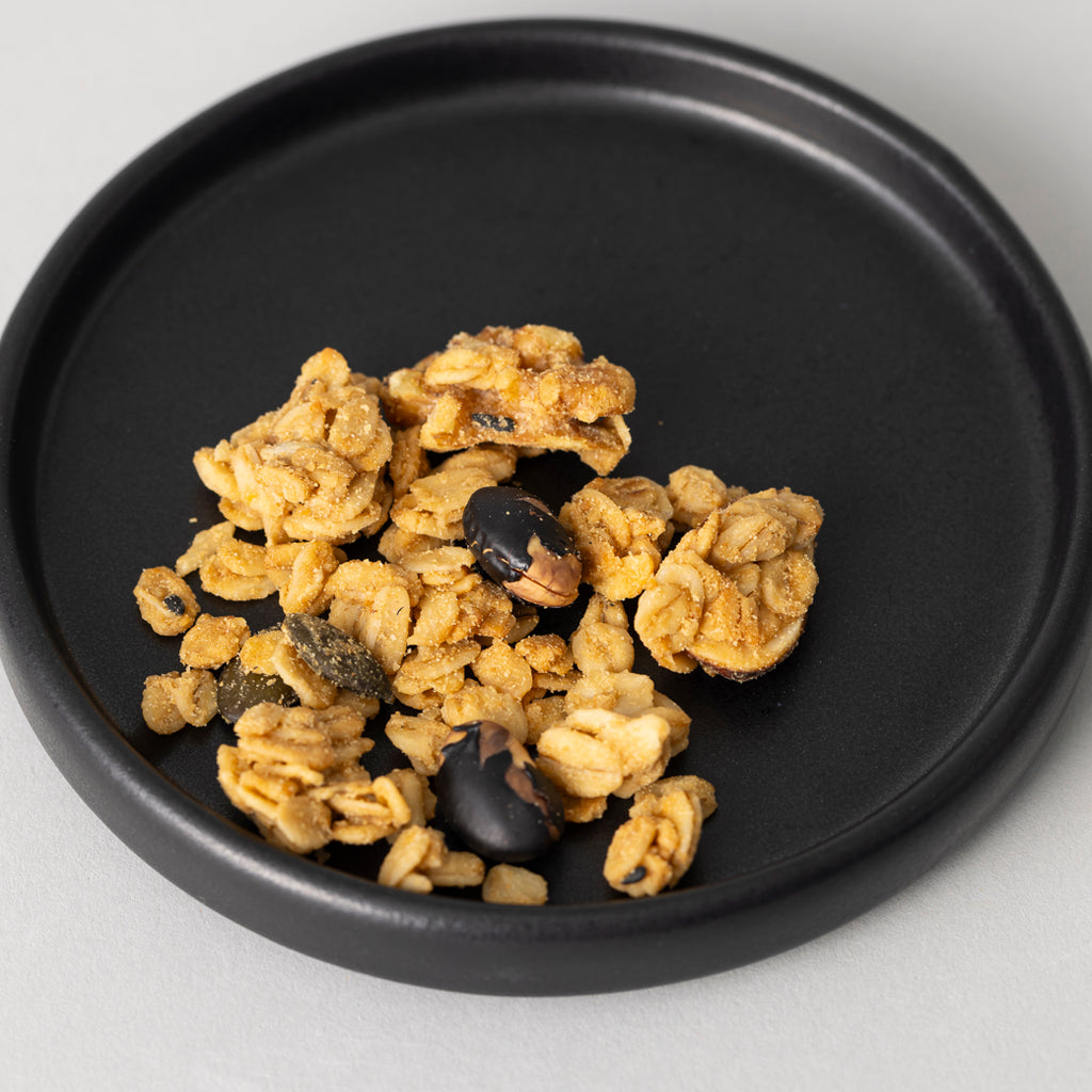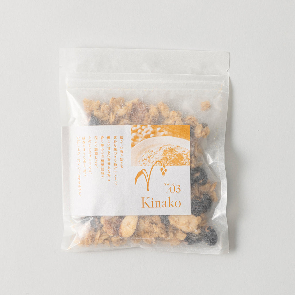 懐かしい香り広がる素朴な味のきな粉グラノーラ。優しい甘さの有機きな粉と香り豊かな有機黒胡麻が程よく調和します。そのままではもちろん、緑茶やほうじ茶と一緒にお召し上がり頂くのもおすすめです。