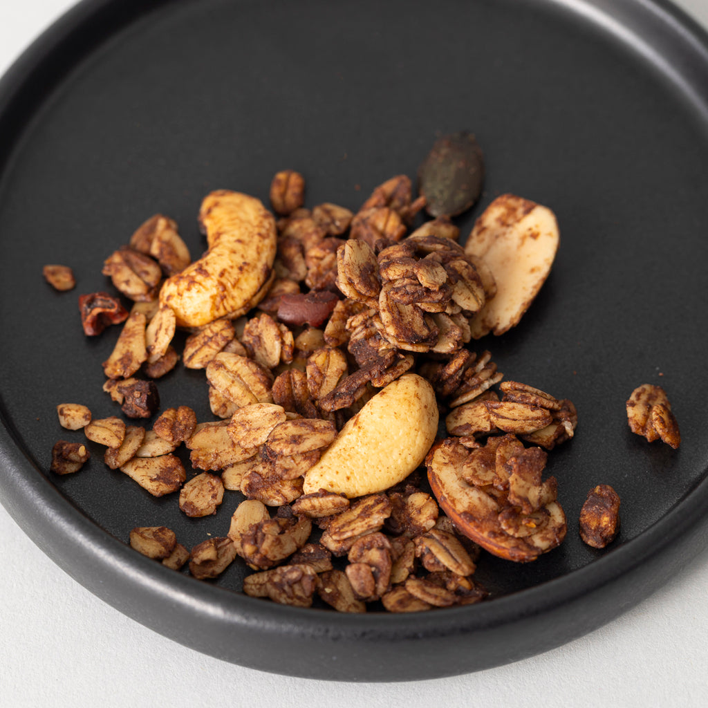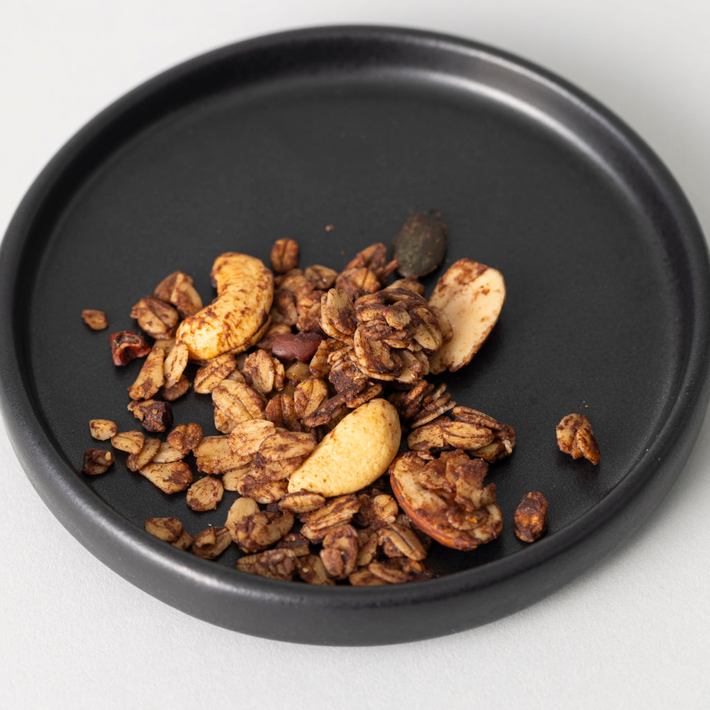 調理師・製菓衛生師としての経験を持つ谷口氏が、5年以上にわたる試行錯誤を経て完成させたレシピをもとに、素材と食感のバランスを追求したクラフトグラノーラです。