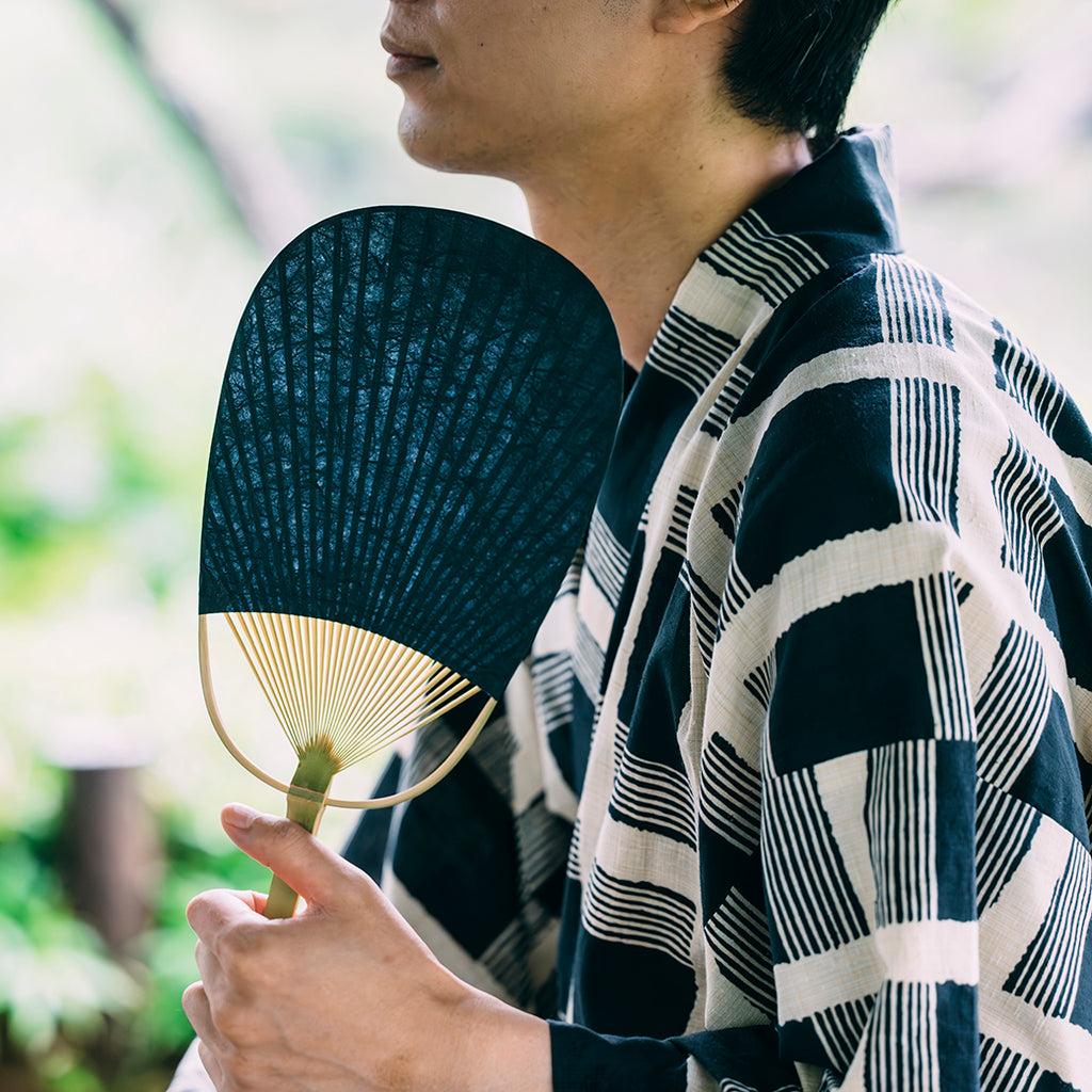 本品は、繊細な和紙に深みのある黒をあしらった、涼を届ける道具でありながら、空間に凛とした存在感をもたらす一枚です。