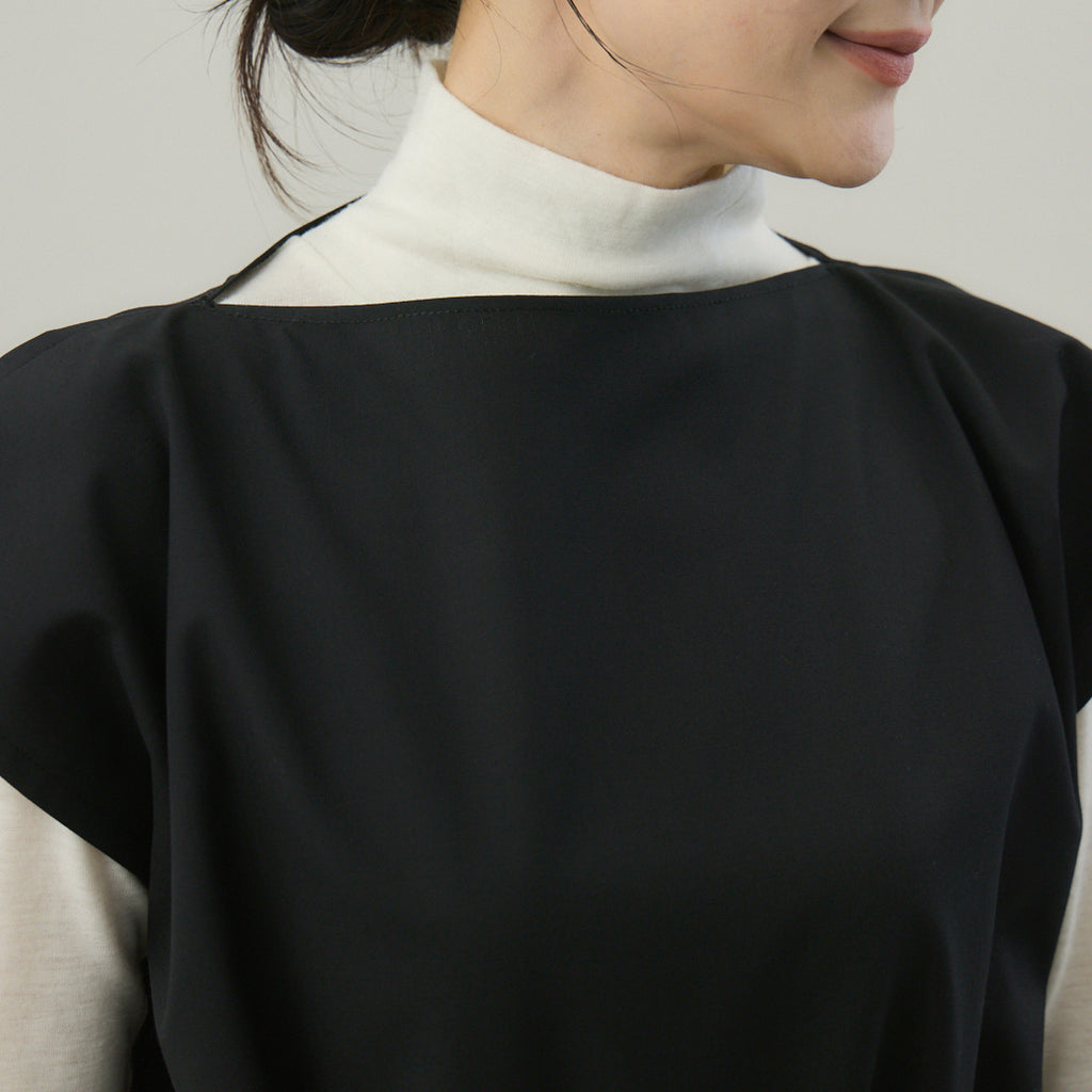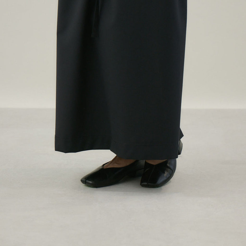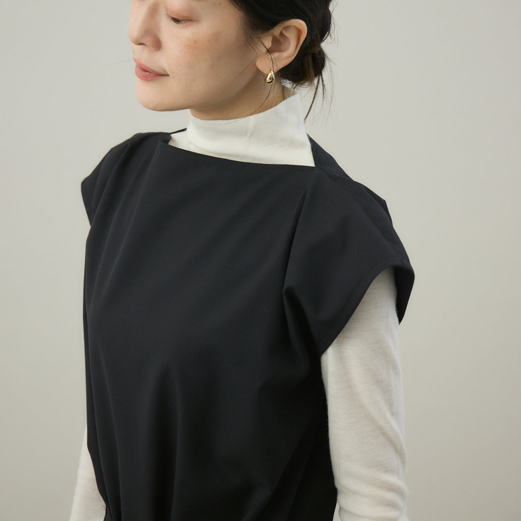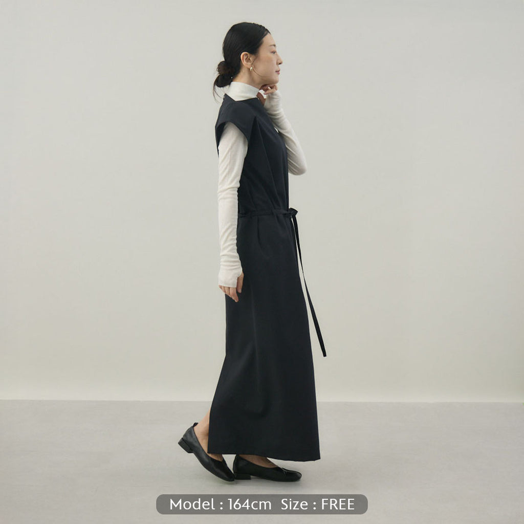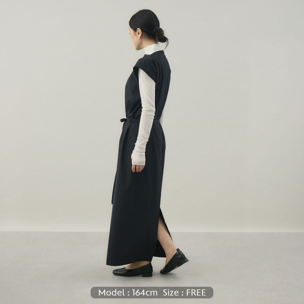 直線的なディテールを組み合わせた独自のパターンが、体型や動きに合わせて自然に変化。前後を入れ替えて着られるリバーシブル仕様に加え、付属ベルトでシルエットアレンジも楽しめます。
