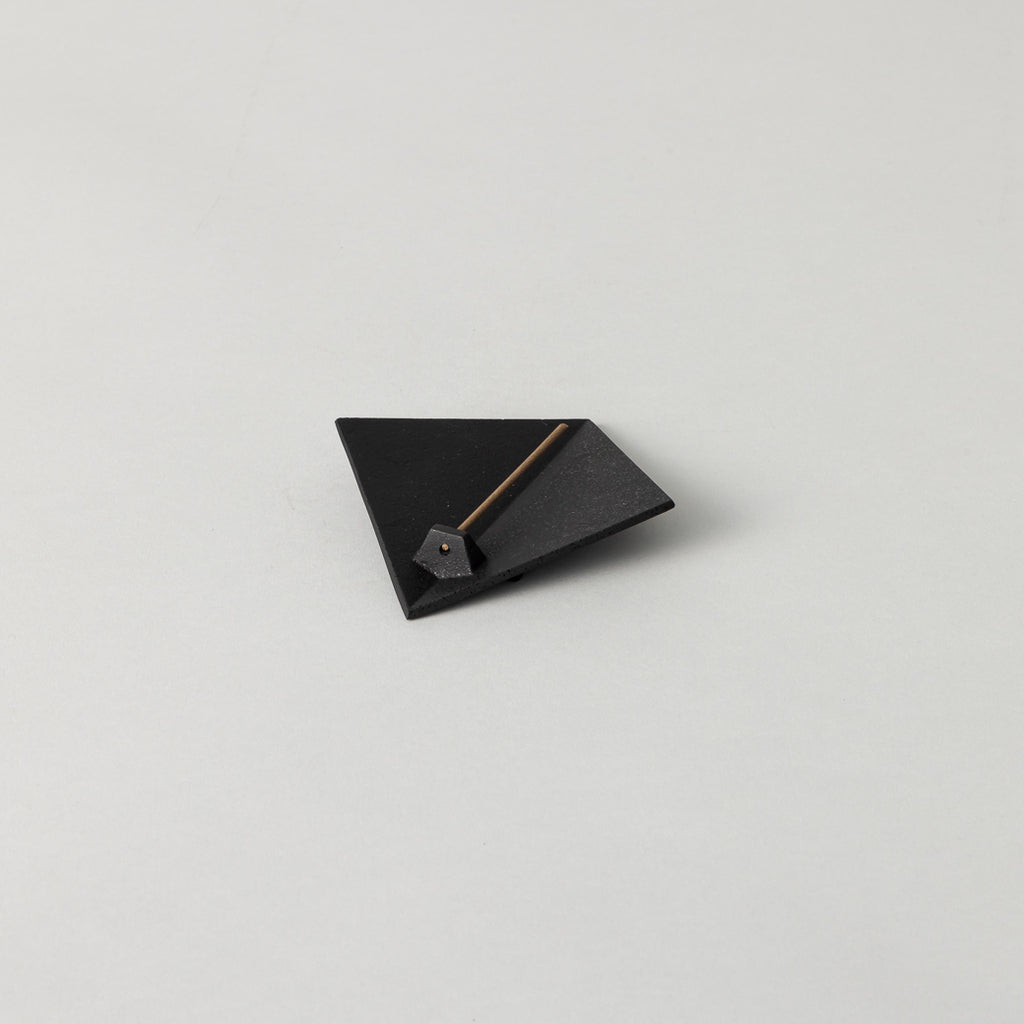 鋳鉄でつくられた香皿です。紙を2つに折った折紙のイメージのデザインです。シンプルな形ですが見る角度で様々な形に見えるデザインです。短いお香を楽しむ時の香立てです。